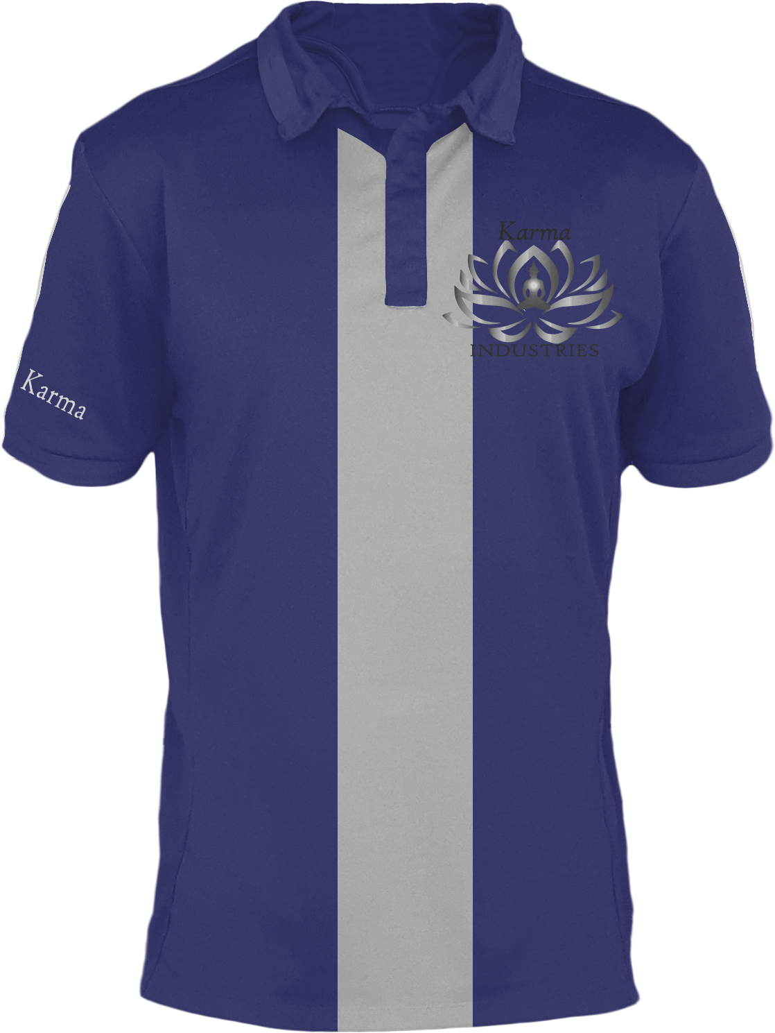 DESIGN NOTES: The logo uses the classic symbol of a Lotus flower, with a Buddha sitting in the heart of the flower. The powerful business side of the company is shown by the strong all caps of “INDUSTRIES,” and the steel like appearance of the Lotus flower. The spiritual side is shown through the italicized “Karma,” and through the ever lighter circle in the Buddha symbolizing the time after time improvement possible in the human spirit.